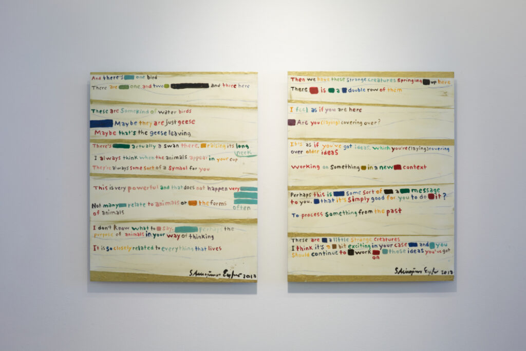 Verk Steingríms Eyfjörð eru fyrst og fremst samtöl þar sem ólíkri reynslu og skoðunum er teflt fram og reynt að rekja í þeim þræðina. Viðfangsefnin koma úr ýmsum áttum, þræðirnir liggja víða og allt virðist eiga erindi í samtal Steingríms: Samfélagsmál, sálfræði, hindurvitni og hjávísindi, sögur, myndlist og bókmenntir. Þetta er díalektísk aðferð þar sem leitin að tengingum og skilningi er samkomulagsatriði milli ólíkra sjónarhorna frekar en að hún lúti einni röklegri reglu. Vinnsla og frágangur verkanna virðist líka vera samræða milli ólíkra leiða og miðla. Þótt texti í einhverri mynd hafi lengi verið gegnumgangandi hefur Steingrímur líka búið til skúlptúra af ýmsu tagi og innsetningar, unnið með teiknimyndaformið, og notað bæði ljósmyndir og vídeó. Sem gestir á sýningum Steingríms göngum við inn í samræðuna og tökum þátt í að opna hana eins og Steingrímur gerir sjálfur.